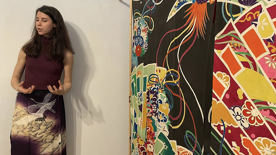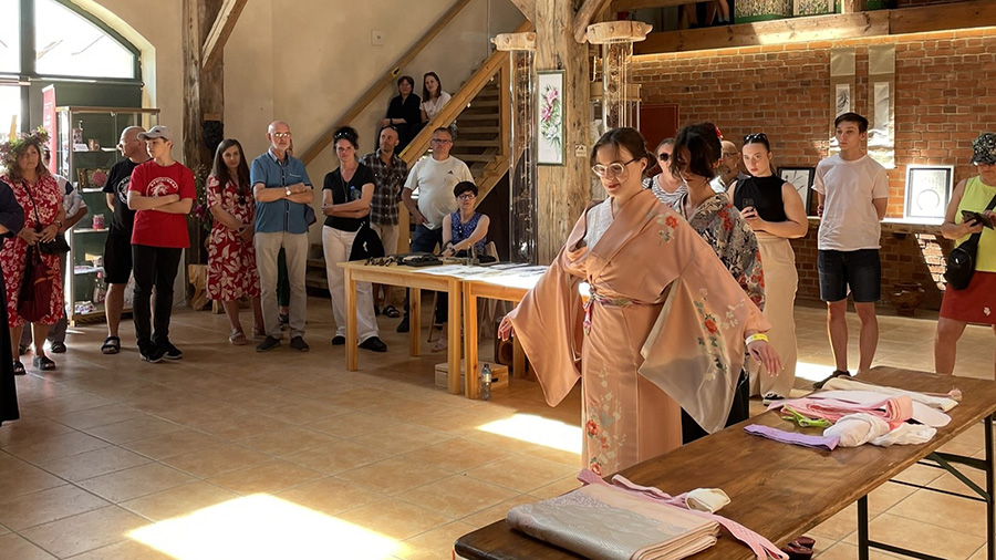 — pokaz zakładania kimona (Alicja Krzywda-Pogorzelska i Dominika Zajączkowska jako modelka)