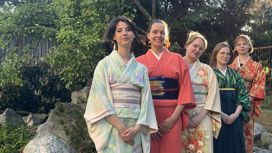 Wprawdzie kimono i kitsuke mają w Fundacji Nami długa historię pokazów, warsztatów, przebierania w yukaty uczestników warsztatów i nawet wystaw muzealnych — tę część naszej działaności opisujemy na stronie kimono.fundacja-nami.pl, ale dopiero od kwietnia roku 2025 w ramach Fundacji Nami działa klub kimonowy 'Nami Oshidori' założony z inicjatywy Alicji Krzywda-Pogorzelskiej.