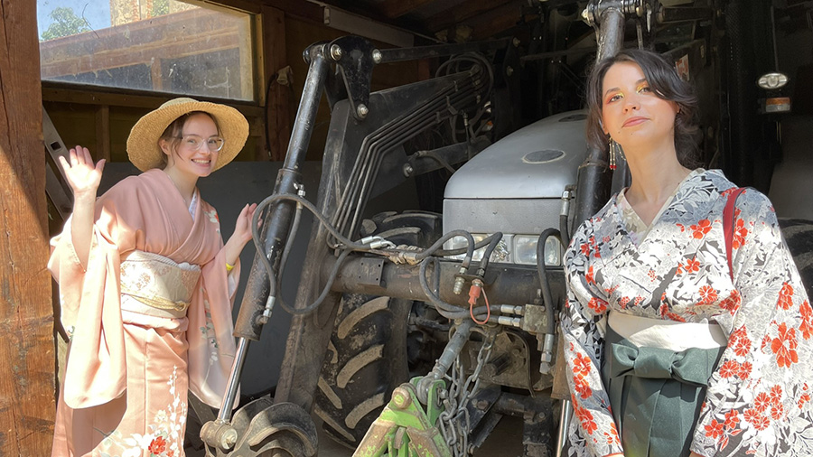 Oprócz tradycyjnej przechadzki w kimonach po pokazie kitsuke w Wojsławicach (Alicja ubrała Dominikę), pokusiliśmy się tym razem o sesję traktorową.