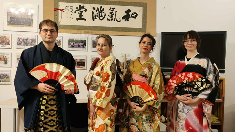 Wprawdzie widoczni na zdjęciach członkowie Klubu kimonowego Nami Oshidori mają już to wydarzenie kilka lat za sobą, ale skorzystali w przeddzień święta z okazji, żeby poćwiczyć zakładnie formalnych kimon dla panien i kawalerów.